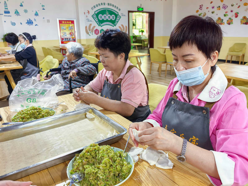 在包餃子的過程中,大家分工明確,配合默契。有人負(fù)責(zé)包餡,有人負(fù)責(zé)捏褶,現(xiàn)場氣氛熱鬧而溫馨。工作人員還不時與老人們互動,教他們包餃子的技巧,老人們學(xué)得認(rèn)真,臉上洋溢著幸福的笑容。金華奶奶開心地說:“好久沒有這么熱鬧了,感覺就像回到了家里一樣。”