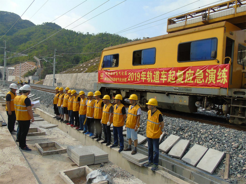 根據(jù)《生產(chǎn)安全事故應(yīng)急條例》中相關(guān)規(guī)定及集團公司、城市建設(shè)分公司要求,梅汕項目部電氣化分部聯(lián)合機械設(shè)備中心第一機械隊于4月24日上午在在湯南隧道進口軌道車停放點處進行了《軌道車脫線起復(fù)應(yīng)急預(yù)案》培訓(xùn)與演練活動。