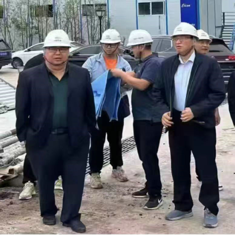 總承包部指揮長(zhǎng)李兵(左1)、黨支部書記王向平(右1)帶頭深入現(xiàn)場(chǎng)及時(shí)解決施工難題