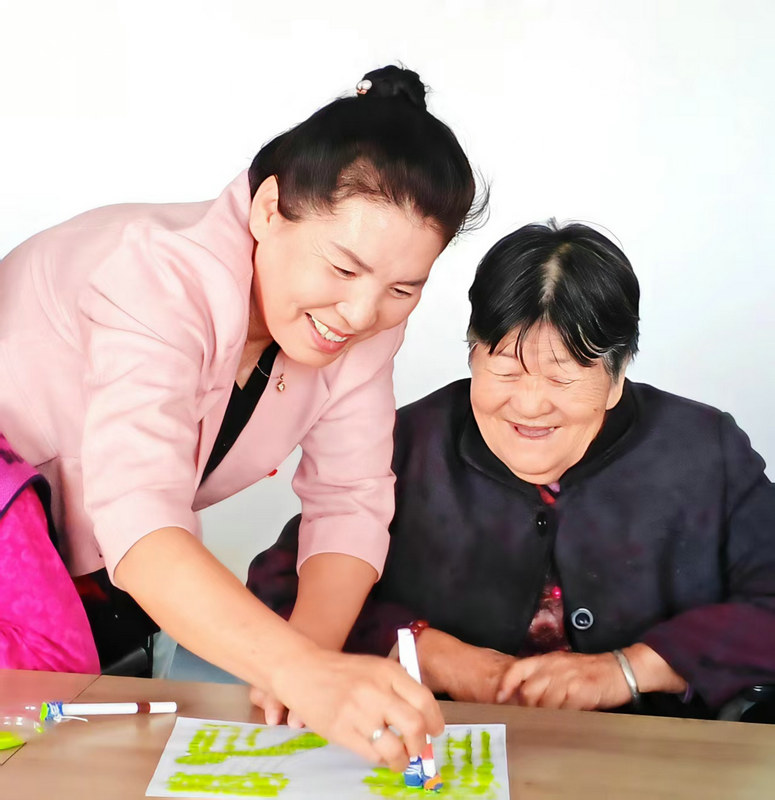 圖1為:9月12日,六師奇臺(tái)110社區(qū)吾家樂寶養(yǎng)老院院長(zhǎng)史云智(左一),正在與老奶奶交流繪畫技藝,其樂融融。