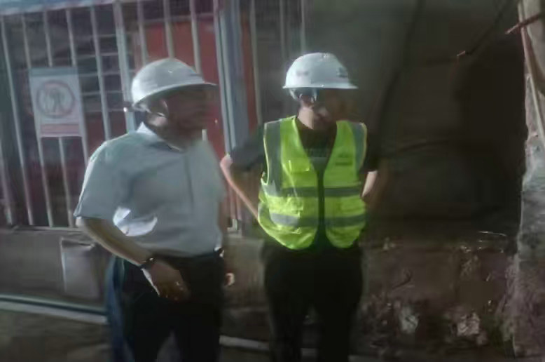 安全員陳沛江(右)在現(xiàn)場安全檢查