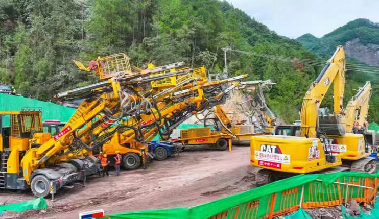 據(jù)中鐵十一局宜涪高鐵項目負責人張光武介紹,面對極其復雜的地質(zhì)和生態(tài)環(huán)境挑戰(zhàn),項目團隊堅持“技術(shù)先行、智能賦能、綠色施工”理念,多措并舉推進工程建設。項目廣泛應用BIM+GIS技術(shù)進行三維可視化建模,實現(xiàn)施工方案模擬優(yōu)化與資源精準配置。洞口設立智能信息化控制中心,集成人員定位、瓦斯監(jiān)測、三維可視化超前地質(zhì)預報、智能鉆爆、智能車輛調(diào)度等系統(tǒng)。智能化裝備方面。引入全電腦三臂鑿巖臺車、拱錨一體臺車、鉆錨注臺車及混凝土噴漿機等智能裝備集群,形成全流程機械化作業(yè)鏈。