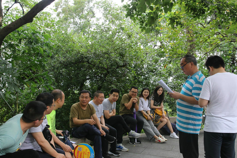 到達(dá)越秀公園,全體人員簡(jiǎn)單的合影留念,就興致高昂地開(kāi)始了徒步,一路上感受著山林里的新鮮空氣和優(yōu)美的風(fēng)景,不時(shí)傳來(lái)大家歡快的笑聲,時(shí)而有人駐足,用手機(jī)記錄下這有意義的一刻,大家感到消遣放松,很是愜意。徐徐的微風(fēng)、參天的大樹(shù)拂去了羊城特有的濕熱,天氣涼爽,沿途景色優(yōu)美,林木蒼翠。聲聲?shū)B(niǎo)鳴不絕于耳,縷縷花香撲面而來(lái),山野之色清新迷人。經(jīng)過(guò)一個(gè)小時(shí)的時(shí)間,大家陸續(xù)到達(dá)“中山紀(jì)念碑”,放眼遠(yuǎn)望,青山疊嶂,峰巒綿延,大家被大自然的美景深深陶醉,紛紛合影留念。