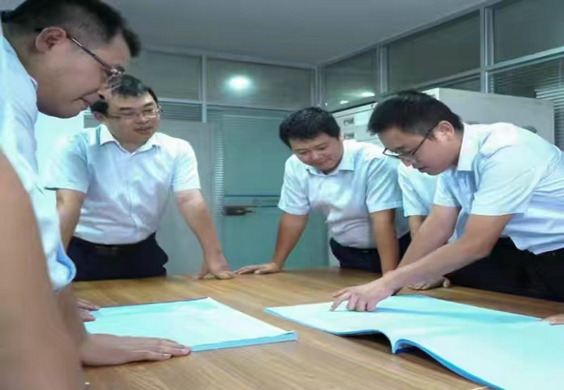 楊振(右1)與團(tuán)隊(duì)成員在研究掛吊一體裝置方案