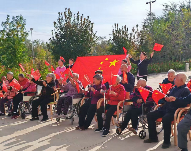 奇臺訊:(通訊員 王學明 報道)9月27日周末下午,時值國慶及中秋佳節(jié)前夕,第六師奇臺110社區(qū)吾家樂寶養(yǎng)老院內(nèi),陽光明媚,秋高氣爽。為表達對偉大祖國和大美新疆的熱愛之情,該院的長者及員工們,手舞鮮艷的國旗,用自己的真實情感,認真開展了“高歌頌黨恩 傾心愛中華”活動。