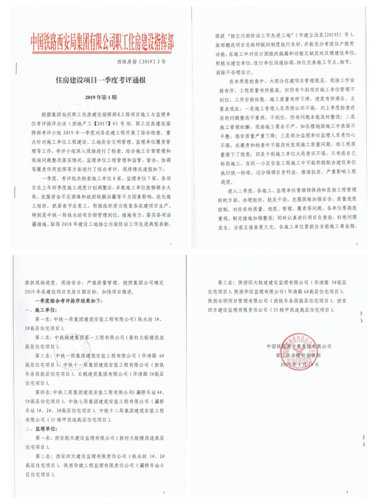 (西安訊)4月19日,中國鐵路西安集團(tuán)有限公司職工住房建設(shè)指揮部發(fā)布了住房建設(shè)項(xiàng)目一季度考評通報(bào),在本次檢查的8家施工單位,中鐵一局南郊棚改項(xiàng)目部再次榮獲季度綜合考評第一名,受到特別表揚(yáng)。