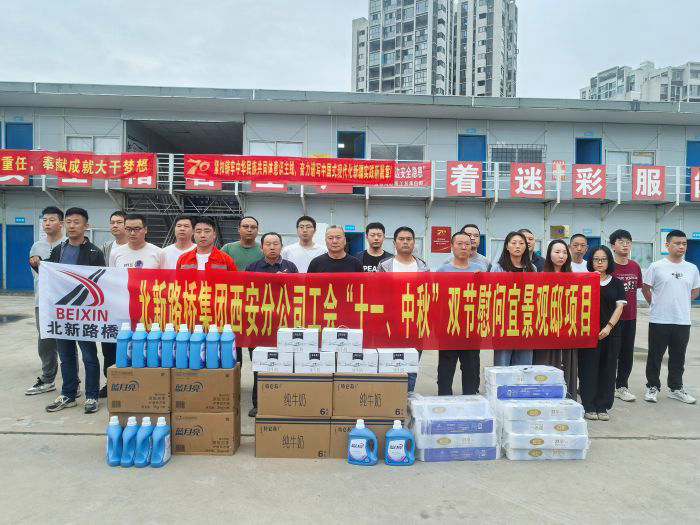 金秋送爽,丹桂飄香,“國(guó)慶、中秋”雙節(jié)來(lái)臨前夕,北新路橋集團(tuán)西安分公司宜景觀邸項(xiàng)目工會(huì)小組精心組織開展雙節(jié)慰問(wèn)活動(dòng),向堅(jiān)守在施工一線的全體職工及默默支持的家屬們傳遞關(guān)懷與溫暖。