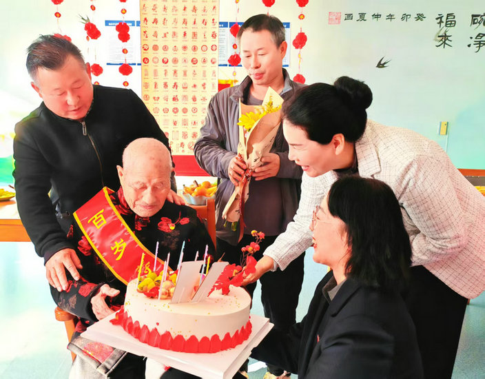 奇臺訊:(通訊員 王學明 報道)10月18日,六師奇臺農場110社區(qū)吾家樂寶養(yǎng)老院在院長者李文生,在三十里大墩社區(qū)王娜書記、該養(yǎng)老院院長史云智和三十里大墩社區(qū)醫(yī)療服務中心醫(yī)務人員的溫馨祝福中,喜度百歲期頤之壽。