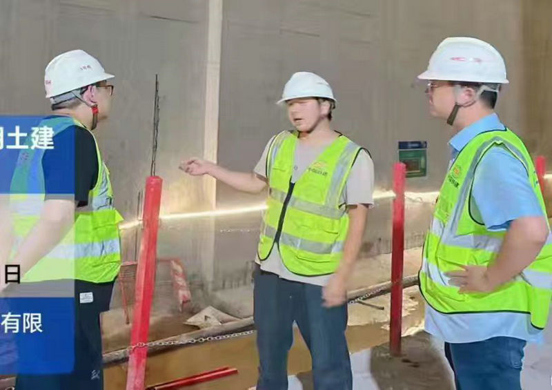 項(xiàng)目黨支部書記糜晶龍(右1)深入現(xiàn)場做好協(xié)調(diào)工作