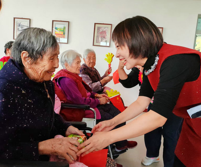 在開展“情暖夕陽(yáng) 愛滿重陽(yáng)”慰問演出中,精彩的“江南秀”歌舞,贏得了長(zhǎng)者們的陣陣掌聲。在觀看演出中,戲迷愛好者們駐耳傾聽“夕陽(yáng)紅業(yè)余演出隊(duì)”演員演唱的河南豫劇《朝陽(yáng)溝》選段,在場(chǎng)有不少長(zhǎng)者輕聲和唱,情不自禁地回憶起了那個(gè)火紅激情的年代。在演出即將結(jié)束時(shí),全體人員揮動(dòng)手中的國(guó)旗,高唱《我和我的祖國(guó)》,一時(shí)間激情高昂的合唱聲,化作一股凝心聚力的力量,大家用歌聲感恩黨,推動(dòng)此次演出再次步入了一個(gè)新的高潮。所有人群心振奮,歌聲嘹亮,大家手中揮動(dòng)的國(guó)旗頓時(shí)紅遍了全場(chǎng)。