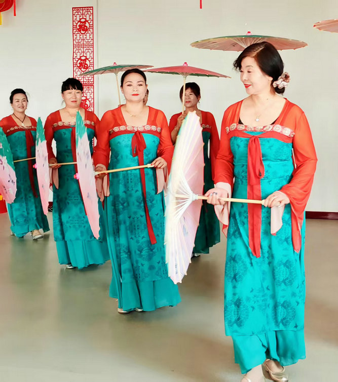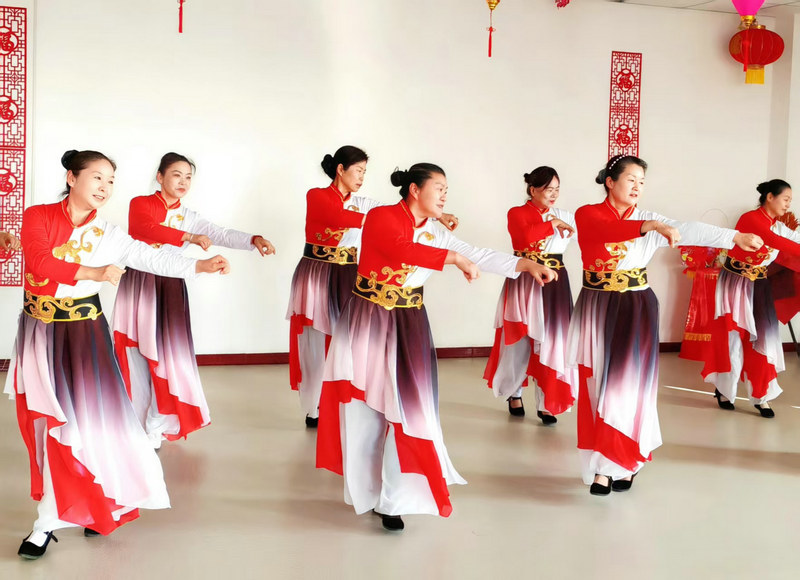 圖2為:奇臺(tái)農(nóng)場(chǎng)三十里大墩社區(qū)“夕陽(yáng)紅業(yè)余演出隊(duì)”的演員們,表演的歌舞《江南秀》,受到了六師奇臺(tái)農(nóng)場(chǎng)110社區(qū)吾家樂寶養(yǎng)老院長(zhǎng)者們的喜愛。