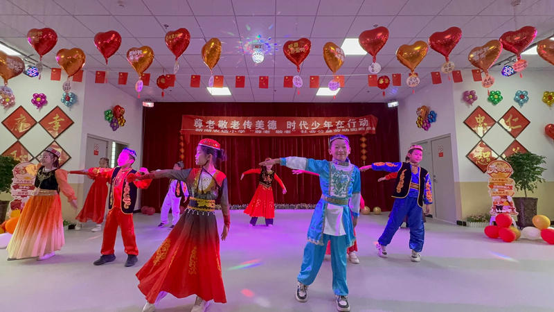 活動在孩子們清脆的歌聲中拉開序幕。伴隨著輕快的旋律,孩子們或獨唱或合唱,稚嫩的嗓音里滿是真誠,引得爺爺奶奶們頻頻點頭微笑。隨后,舞蹈《哇哈哈》精彩登場,孩子們身著鮮艷的服裝,邁著活潑的舞步,靈動的身影在舞臺上跳躍,將現場的歡樂氛圍推向高潮,長者們的臉上都洋溢著幸福的笑容,紛紛拿出手機記錄下這熱鬧的瞬間。