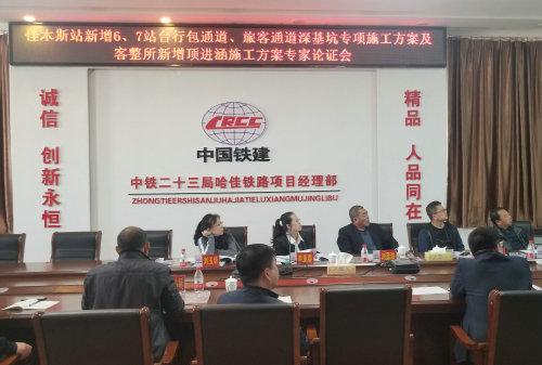 近日,佳木斯站新增6、7站臺(tái)及頂進(jìn)涵施工方案專家論證會(huì)在中鐵二十三局集團(tuán)二公司哈佳鐵路項(xiàng)目部八樓會(huì)議室召開,會(huì)議對(duì)方案的可行性進(jìn)行了論證,為早日動(dòng)工奠定了基礎(chǔ)。