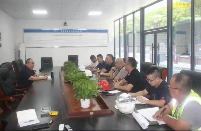 總承包部指揮長李兵(左1)組織召開18標(biāo)項目優(yōu)化施工方案會議