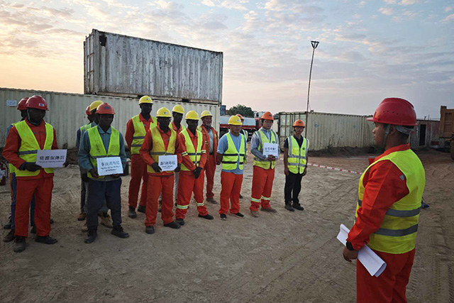 安哥拉訊(通訊員王濤)為進(jìn)一步強(qiáng)化安全生產(chǎn)管理,提升突發(fā)事件應(yīng)急處置能力,近日,新疆兵團(tuán)建工北新國際南部非洲區(qū)松貝項(xiàng)目組織全體中、安籍員工開展消防應(yīng)急演練及安全培訓(xùn)活動,以實(shí)戰(zhàn)化舉措筑牢安全防線,為工程項(xiàng)目平穩(wěn)推進(jìn)保駕護(hù)航。