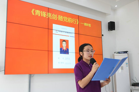 接著,進行了以“青春心向黨 建功新時代”為主題的演講比賽、知識競賽及你演我猜的趣味比賽。由7名演講者開始了激烈的演講比賽,他們滿懷最真摯的情感,用最優(yōu)美的語言,表達他們熱愛祖國,奮力拼搏的錚錚誓詞。精彩的演講后,進入了“知識競賽”環(huán)節(jié)。書山有路勤為徑,學海無涯苦作舟。各參賽隊員精力集中,反應敏捷,競賽氣氛緊張激烈,大家你追我趕,搶答精彩迭出,淋漓盡致地體現(xiàn)了青年的朝氣、陽光與活力。在默契大比拼“你演我猜”比賽中,各參賽隊員生動形象地用肢體表演,猜測者才思敏捷,在一陣陣笑聲中,比出了默契,猜出了友誼。
