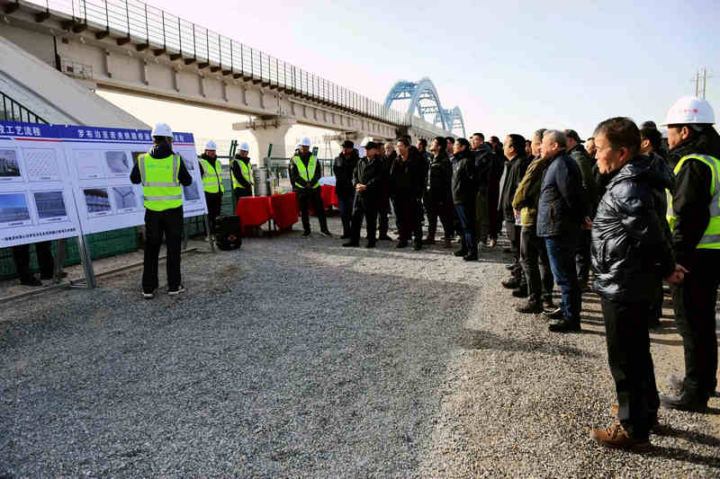 中鐵二十一局承建的羅若鐵路S2標(biāo)全長 180.949 正線公里,涵蓋路基、橋涵、房建等多項(xiàng)關(guān)鍵工程。面對沙漠腹地?zé)o水、無電、無信號的 “三無” 極端環(huán)境,項(xiàng)目部始終堅(jiān)守 “精品建造、綠色建造” 理念,將技術(shù)創(chuàng)新作為破解施工難題的核心抓手,以全流程高標(biāo)準(zhǔn)管控筑牢工程質(zhì)量根基,最終打造出 “外美內(nèi)實(shí)” 的優(yōu)質(zhì)工程,贏得與會人員一致高度贊譽(yù)。?