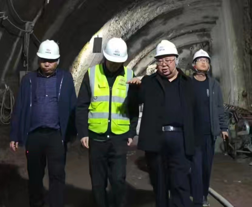 總承包部指揮長李兵(右2)深入隧道施工現(xiàn)場排查