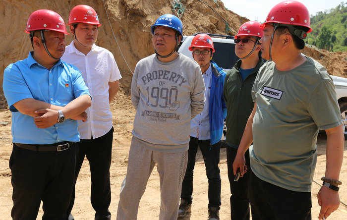 項(xiàng)目班子成員與總監(jiān)徐艷軍(左三)現(xiàn)場(chǎng)研究改道方案