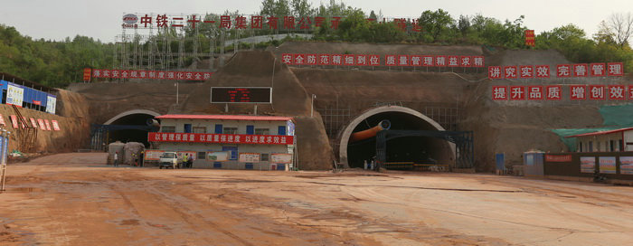滎陽(yáng)G234改建工程Ⅱ標(biāo)項(xiàng)目部面臨的壓力不僅僅來(lái)自環(huán)保方面,而且還面臨著工程量大、工期緊、重難點(diǎn)工程挑戰(zhàn)。但建設(shè)者別無(wú)選擇,他們迎難而上直面挑戰(zhàn)。萬(wàn)山隧道是Ⅱ標(biāo)控制工程,也是全線重難點(diǎn)工程。雖然這座隧道左右線加起來(lái)只有3175米,但洞口施工場(chǎng)面十分宏大。在隧道出口,開(kāi)挖裸露的山體被綠色防塵網(wǎng)嚴(yán)嚴(yán)實(shí)實(shí)地覆蓋,地面全部硬化,綠色施工理念在這里得到充分體現(xiàn)。各種宣傳牌和展板傳遞著中國(guó)鐵建的企業(yè)文化理念。“周密策劃,科學(xué)管理,忠于設(shè)計(jì),精心施工,敬畏生命,工地就是戰(zhàn)場(chǎng),工期就是尊嚴(yán)”等標(biāo)語(yǔ)展示了中鐵二十一局三公司注重安全質(zhì)量,嚴(yán)守信譽(yù),兌現(xiàn)工期的莊嚴(yán)承諾。