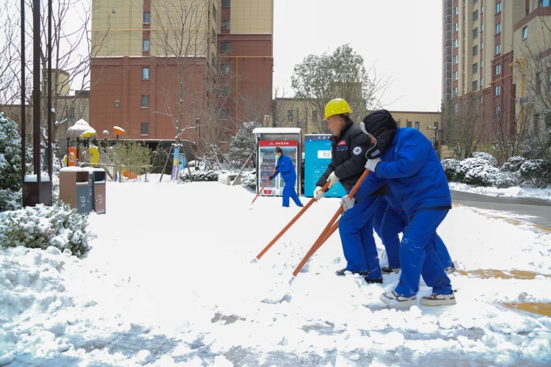 美景相伴,責任在肩。雪情就是命令,暢通就是目標,中鐵中產(chǎn)置業(yè)公司各項目延續(xù)往年優(yōu)良作風,以“雪”為令、聞雪而動,迅速進入應急狀態(tài),中鐵·泰和府、中鐵·泰和里項目首當其沖,第一時間組織員工開展掃雪除冰工作。
