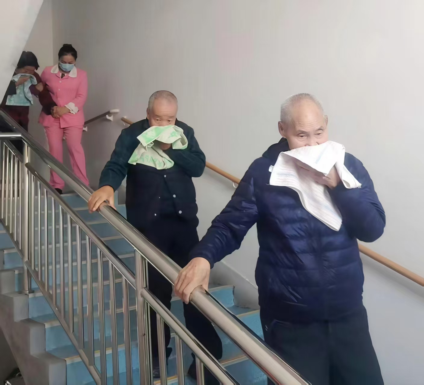 圖2為:第六師奇臺(tái)農(nóng)場(chǎng)110社區(qū)吾家樂(lè)寶養(yǎng)老院開(kāi)展消防火災(zāi)應(yīng)急演練,員工正組織在院長(zhǎng)者們安全逃生撤離。