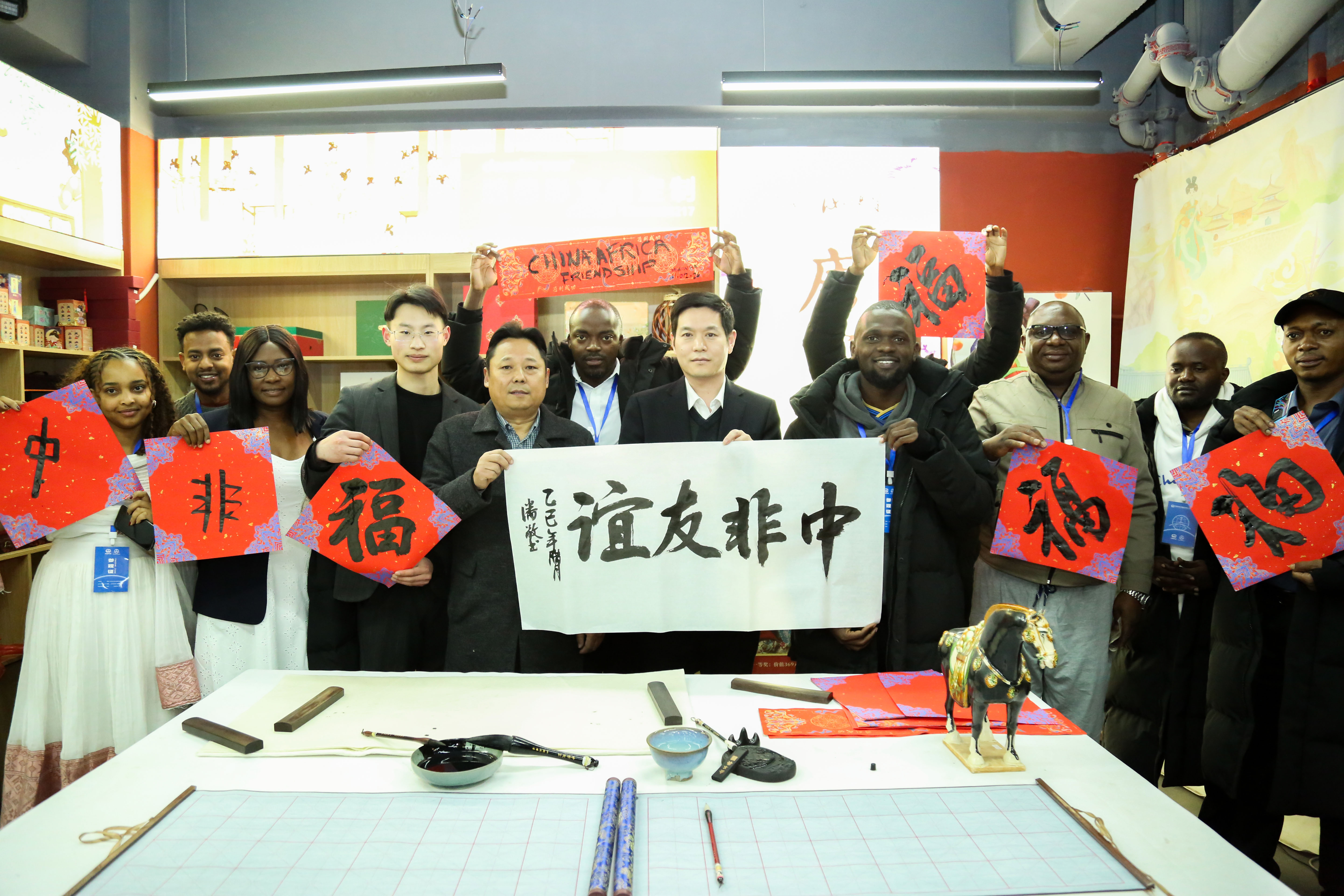 體驗(yàn)環(huán)節(jié)中,外籍友人們興致盎然地參與非遺毛筆書寫,在筆墨流轉(zhuǎn)間體悟中華傳統(tǒng)文化的博大精深。一筆一畫間,“中非友誼”四個(gè)蒼勁有力的漢字躍然紙上;在特色老字號(hào)展館,他們駐足深入了解中原民俗文化內(nèi)涵。夜幕降臨,《國(guó)樂新編》《儺戲祈福》等特色演藝輪番上演,《王府招胥》、《篝火聯(lián)歡》等環(huán)節(jié)點(diǎn)燃現(xiàn)場(chǎng)氛圍,中外人士載歌載舞、親切互動(dòng),歡聲笑語間拉近了心與心的距離,定格下中非民心相通的溫馨瞬間。