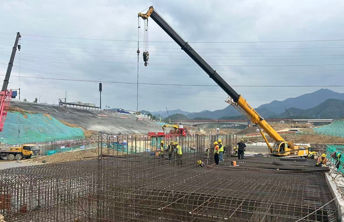 招賢樞紐泄洪閘設(shè)計18個閘墩,墩身高17.3米,其高度和數(shù)量在常山江項(xiàng)目4座樞紐泄洪閘墩中“一枝獨(dú)秀”,與最大的招賢電站相匹配。該樞紐泄洪閘于2023年9月開工,在4座樞紐中率先破土動工。項(xiàng)目管理層采取崗位練兵,“是騾子是馬拉出來溜溜”的選人用人辦法,確定招賢工區(qū)管理人員,為加強(qiáng)樞紐組織領(lǐng)導(dǎo),帶領(lǐng)員工圓滿完成一個個節(jié)點(diǎn)目標(biāo)發(fā)揮了重要作用。針對汛期暴雨+上游多座水庫泄洪,導(dǎo)致江水暴漲超10米的洪峰過境的特點(diǎn),充分抓住雨水淡季河道筑圍堰好施工的有利形勢,晝夜倒班進(jìn)行基坑、底板、閘墩首節(jié)和上部結(jié)構(gòu)施工,汛期到來前突擊完成了10個閘墩,在與大自然較量中贏得勝利。