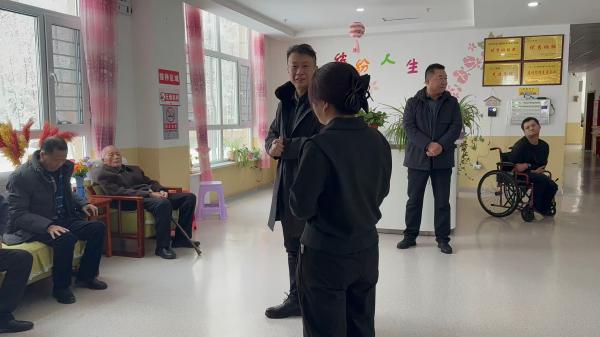 院長對團(tuán)場政委和愛心企業(yè)的到來表示衷心感謝,并詳細(xì)介紹了機(jī)構(gòu)的運營情況、老人們的照料服務(wù)等相關(guān)工作。負(fù)責(zé)人表示,將不負(fù)團(tuán)場和社會各界的關(guān)心與囑托,用心用情做好養(yǎng)老服務(wù)工作,細(xì)致照顧好每一位老人的飲食起居和身心健康,全力為老人們營造一個溫馨、舒適、安全的養(yǎng)老環(huán)境,讓老人們舒心、家屬放心。