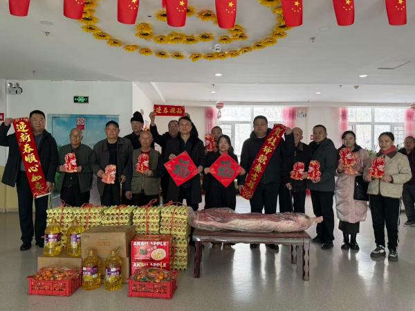 慰問現(xiàn)場,暖意融融、溫情涌動。團(tuán)場政委一行與老人們促膝長談、噓寒問暖,詳細(xì)詢問老人們的身體狀況、飲食起居和日常照料情況,細(xì)心叮囑老人們注意冬季保暖、保重身體,保持樂觀開朗的心態(tài),安享幸福晚年。“小年到了,我們代表團(tuán)場和愛心企業(yè)來看望大家,給老人們拜個早年,祝大家身體健康、福壽綿長、新春快樂!”政委的話語樸實真摯,一句句關(guān)切的問候、一聲聲溫暖的祝福,驅(qū)散了冬日的寒意,讓老人們臉上洋溢著幸福的笑容。