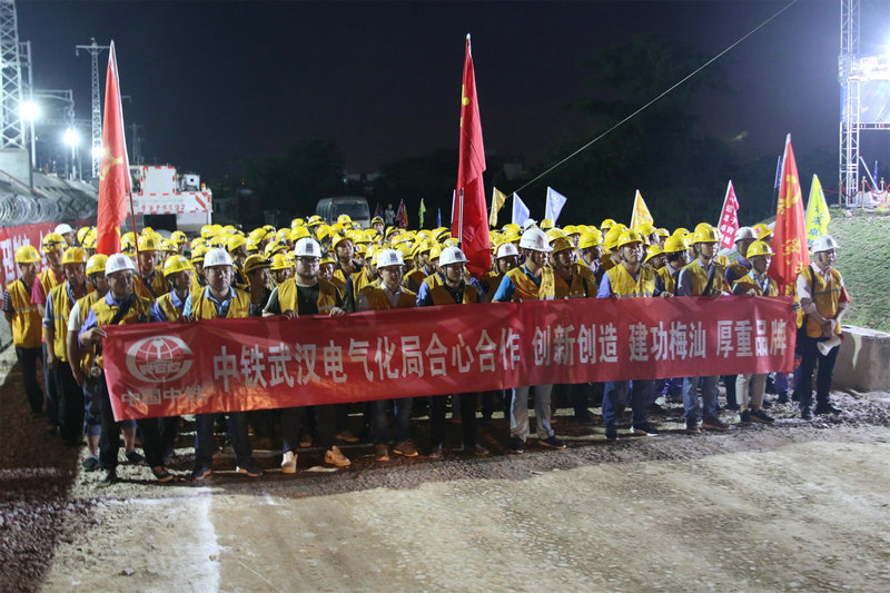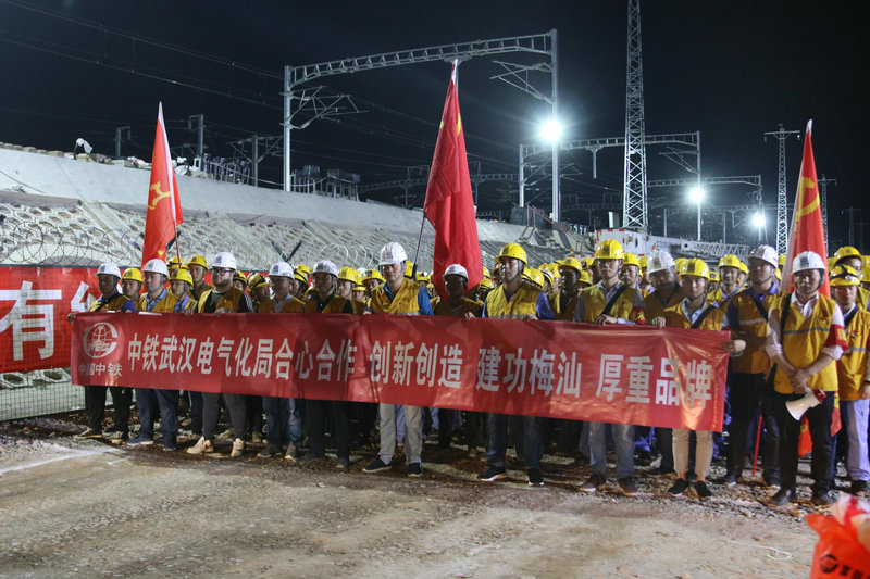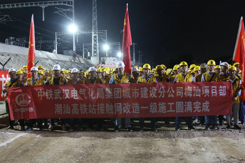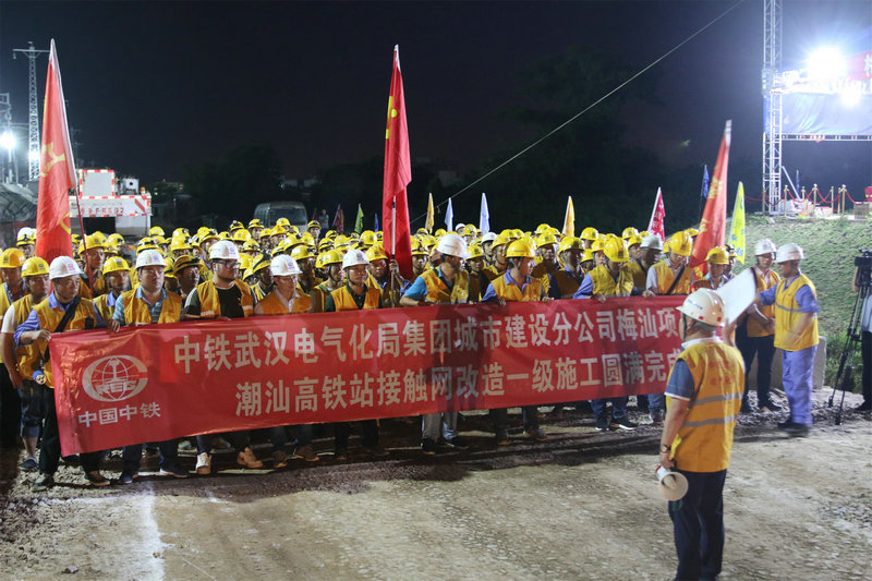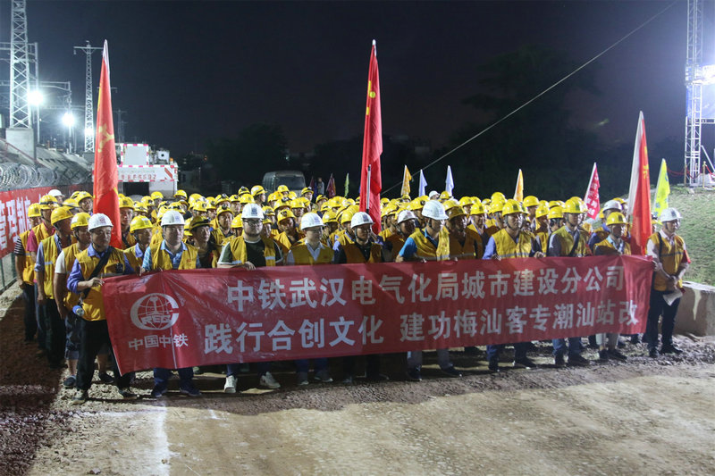 潮汕站改工程,是中鐵武漢電氣化局集團城市建設(shè)分公司首次在粵東地區(qū)進行的既有線站改施工,能否按期安全完成首次綜合要點施工任務意義重大。為確保此次任務勝利完成,集團公司黨委副書記、工會主席、副總經(jīng)理吳國琦,集團公司副總工程師萬金親臨現(xiàn)場,坐鎮(zhèn)指揮;分公司黨委書記何明全,黨委副書記、紀委書記、工會負責人熊衛(wèi)東,副總經(jīng)理、總工程師陳武等領(lǐng)導靠前指揮,項目黨工委書記吳軍帶領(lǐng)班子成員現(xiàn)場盯崗。“要點”施工前,建設(shè)者不等不靠,積極主動與中國鐵路廣州局等有關(guān)部門協(xié)調(diào)并開展站改工作,克服了前期既有線施工手續(xù)繁瑣、施工周期長等不利因素,不斷優(yōu)化施工方案,科學組織施工,加強現(xiàn)場盯控,嚴把質(zhì)量關(guān),確保了站改任務的圓滿完成,得到了中國鐵路廣州局對集團公司既有線施工能力的認可。