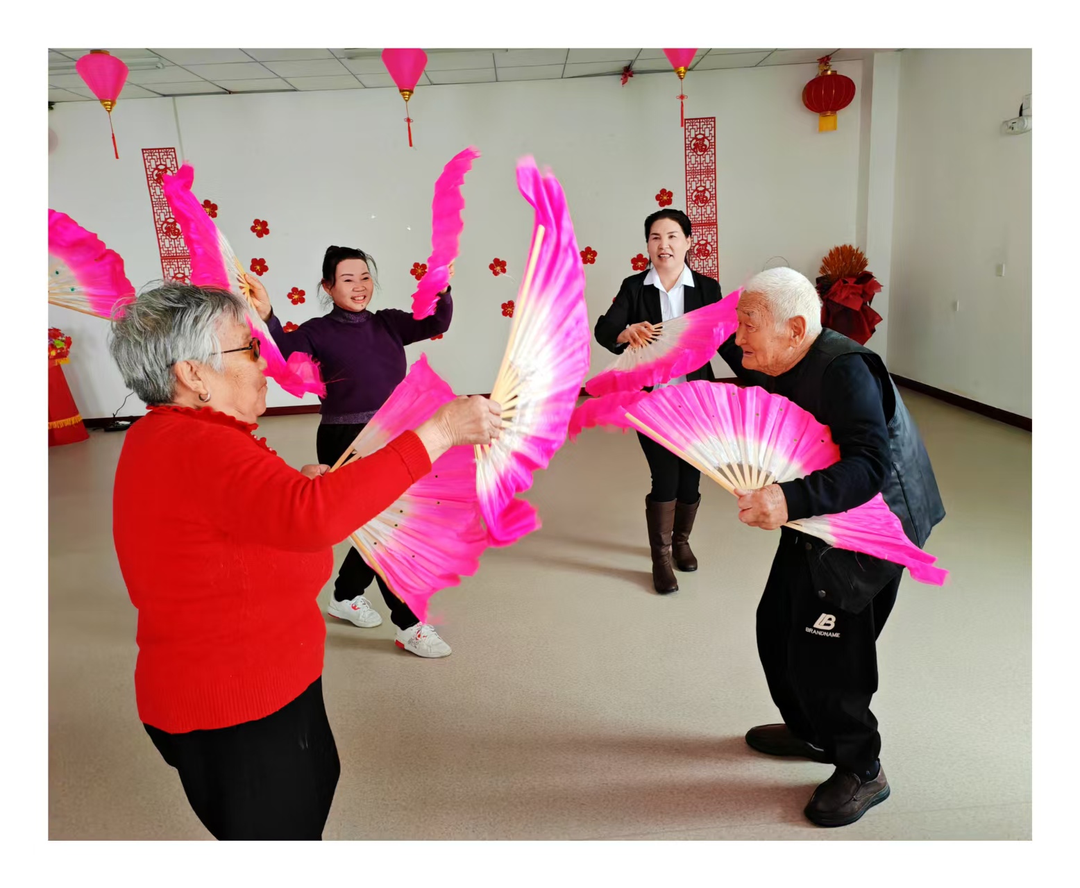 圖一:第六師奇臺農(nóng)場 110 社區(qū)吾家樂寶養(yǎng)老院的女員工們歡度節(jié)日,臉上洋溢著喜慶歡樂的笑容。