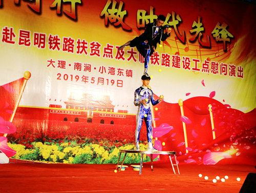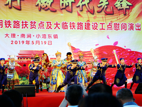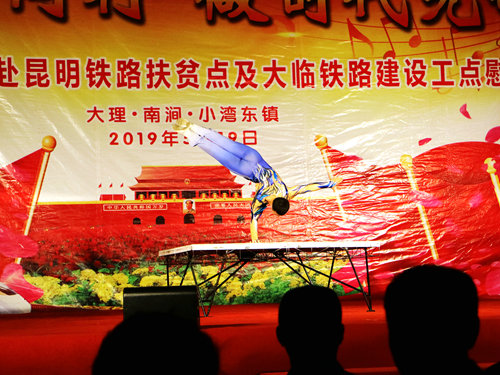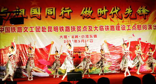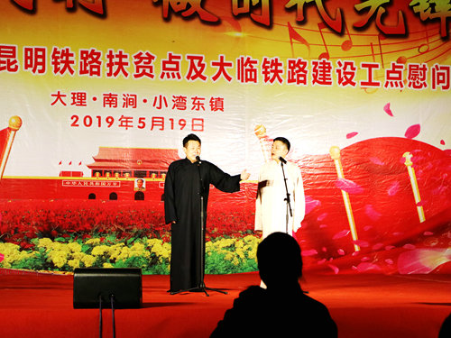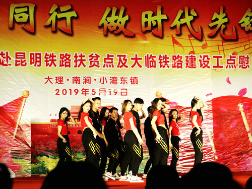 中國鐵路工程建設網訊(通訊員 鄭建軍)5月19日,中國鐵路文工團以“與祖國同行·做時代先鋒”為主題的文藝晚會在中鐵十二局集團一公司大臨三項目部工地精彩上演,數(shù)十名演職人員登臺獻藝,其中不乏多次獲得國家級演出金獎的節(jié)目和國家一級演員,強大的演出陣容為一線職工和駐地百姓送上了相聲、歌舞、雜技、小品等精彩的文藝大餐。據(jù)悉,本次演出舉辦地小灣東鎮(zhèn)是昆明局集團定點扶貧點,文藝演出為打響扶貧攻堅戰(zhàn)、決勝大臨鐵路建設鼓舞了士氣。