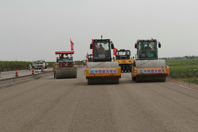 現(xiàn)場人員經(jīng)過4個多小時默契配合有序施工,經(jīng)初步檢測,壓實度,寬度,厚度,平整度,高程和混合料級配等主要技術指標均符合要求,通過試驗段施工,項目部掌握了底基層的松鋪系數(shù),碾壓遍數(shù)和機械施工速度等重要參數(shù)。為下一步水穩(wěn)底基層大面施工奠定了堅實基礎,也為京藏高速路面立體化施工和左幅順利通車邁出重要一步。