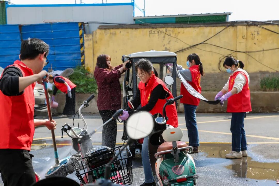 活動(dòng)現(xiàn)場(chǎng)井然有序、氛圍熱烈,服務(wù)隊(duì)隊(duì)員們分成兩支小隊(duì)同步開(kāi)展服務(wù)。第一分隊(duì)在小區(qū)東側(cè)通道服務(wù)點(diǎn)位,專(zhuān)注為業(yè)主清洗電動(dòng)車(chē),隊(duì)員們分工明確、配合默契,認(rèn)真沖洗車(chē)身污垢、清理縫隙死角、細(xì)致擦拭車(chē)身,全程耐心引導(dǎo)業(yè)主有序排隊(duì)、文明參與。第二分隊(duì)聚焦小區(qū)衛(wèi)生整治,重點(diǎn)對(duì)小區(qū)下沉景觀、綠化帶、角落盲區(qū)等衛(wèi)生死角進(jìn)行了清理。