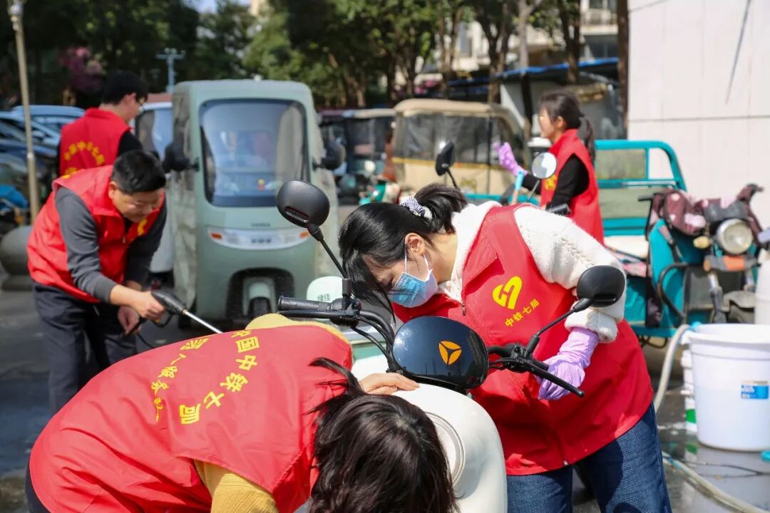 當(dāng)日,由中鐵七局中產(chǎn)置業(yè)、中產(chǎn)物業(yè)、中鐵七局社區(qū)聯(lián)合組建的小七安居服務(wù)隊(duì),走進(jìn)石化路小區(qū)52號(hào)院開(kāi)展首場(chǎng)便民服務(wù)活動(dòng),通過(guò)免費(fèi)清洗電動(dòng)車(chē)、清理衛(wèi)生死角等務(wù)實(shí)舉措,切實(shí)為居民辦實(shí)事、辦好事。