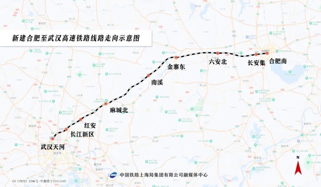 作為國家“八縱八橫”高鐵網(wǎng)沿江通道的重要組成部分,合武高鐵是滬渝蓉沿江高鐵合肥至武漢段線路,途經(jīng)安徽、湖北兩省,起自合肥鐵路樞紐合肥南站,經(jīng)安徽省六安市、金寨縣及湖北省麻城市、紅安縣,終至武漢鐵路樞紐,經(jīng)武漢天河站接入在建的滬渝蓉沿江高鐵武漢至宜昌段。正線全長約360公里,設(shè)計時速350公里,共設(shè)合肥南、長安集、六安北、金寨東、南溪、麻城北、紅安、長江新區(qū)、武漢天河等9座車站。