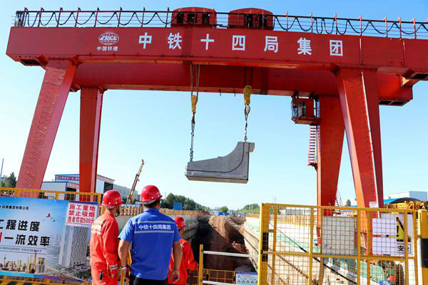 接著工人師傅們,開始吊裝A塊和B2塊,經(jīng)過9個多小時的奮力拼搏,中鐵十四局長春地鐵2號線西延線捷達(dá)大路站裝配式車站首環(huán)A、B塊順利拼裝成功。標(biāo)志著該項目部的施工進(jìn)程又向前邁進(jìn)了一大步,為下一步汽捷區(qū)間盾構(gòu)貫通奠定了堅實的基礎(chǔ)。