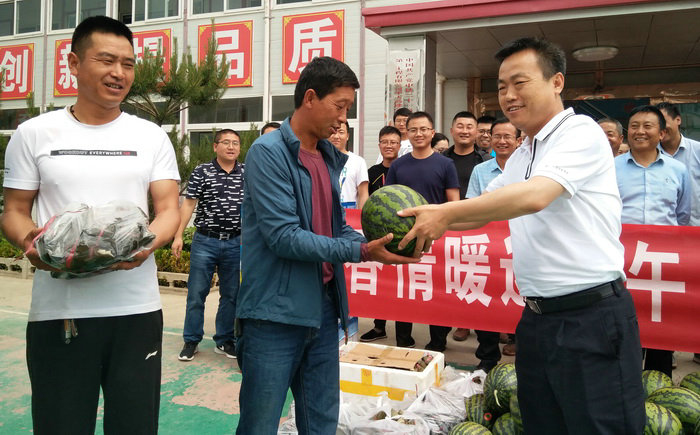 公司副總經(jīng)理魏惠民為建設(shè)者發(fā)放慰問品