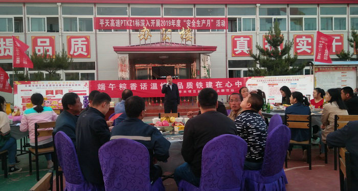 公司副總經(jīng)理魏惠民為晚會致辭,他說,這兩天項目部全體職工都在為路基交驗工作辛苦工作,借“端午”佳節(jié)這個時機,讓大家休閑、娛樂一下,同時緩解一下工作壓力,讓我們的工作既嚴(yán)肅緊張,又團(tuán)結(jié)活潑;希望通過開展活動,大家能夠坐在一起心連心,心交心,使我們這個大家庭更加和諧,更加有戰(zhàn)斗力;端午節(jié)是為了紀(jì)念屈原“沉江報國”的愛國主義精神,希望在座各位不忘初心講責(zé)任,牢記使命勇?lián)?dāng),發(fā)揚愛國、愛企、愛家精神,干好自己的本職工作,為勝利在望的平天高速施工添磚加瓦。
