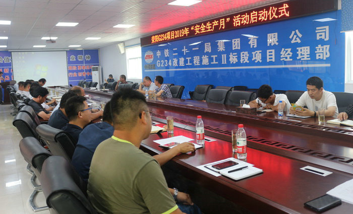 項目部召開安全專題會議 此次安全生產(chǎn)月活動,為G234項目安全工作提供了一次全面的“清洗”機會,全體參建員工形成統(tǒng)一思想、強化崗位職責、規(guī)范技術(shù)操作流程、加強重難點施工區(qū)域?qū)m棏?yīng)急演練及風險評估,加大大氣污染環(huán)節(jié)管控及落實力度,確保“安全生產(chǎn)月”活動真正起到實效。