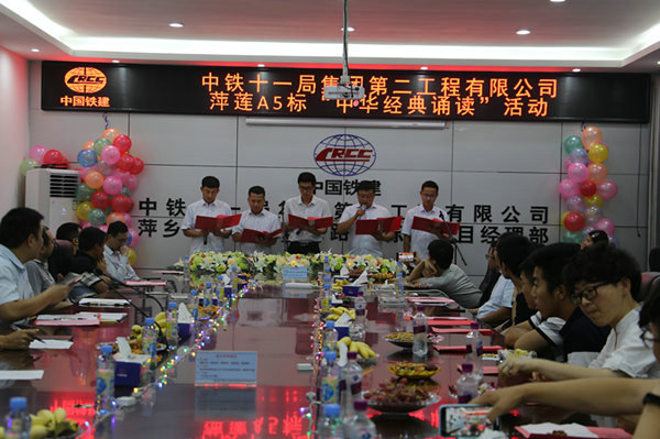 “高揚共青團的旗幟,昂首闊步,邁進新輝煌,青春心向黨,建功新時代……”中鐵十一局二公司萍蓮高速A5項目團支部的小伙伴們,用豪邁的《筑夢萍蓮 青春A5》,抒發(fā)了對愛國主義精神的感懷。這是6月6日,萍蓮高速A5項目部“我們的節(jié)日·端午”經(jīng)典誦讀活動的現(xiàn)場。