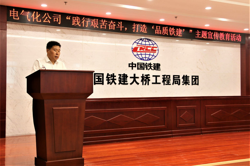 圖一、中鐵建大橋局電氣化公司黨委副書記、工會(huì)主席姚金立代表公司黨委發(fā)出倡議