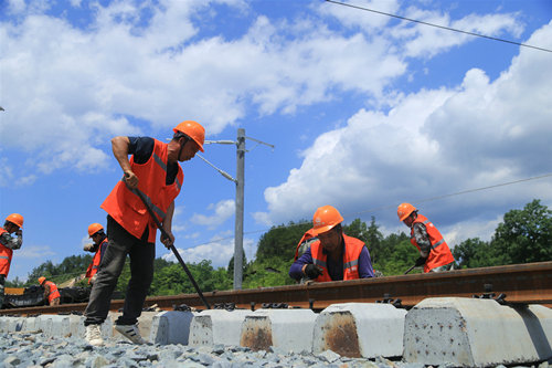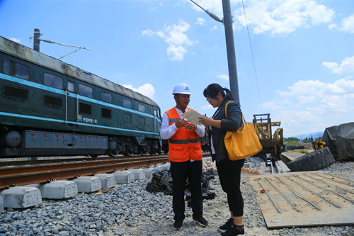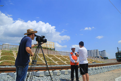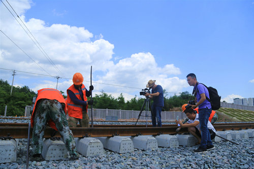 (李艷春 譚帥 高明)6月13日下午,重慶日報社、重慶黔江區(qū)電視臺媒體記者頂著炎炎烈日來到中鐵一局新運黔張常項目部人工鋪軌現場,對目前政府及廣大市民普遍關心的在建黔張常鐵路進行了重點采訪報道。