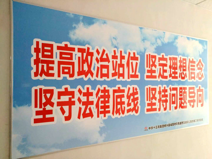 同時,將悠久、厚重的企業(yè)文化在修水項目發(fā)揚廣大的基礎(chǔ)上,在創(chuàng)新上作文章。以內(nèi)容新穎別致的橫幅標語和制作精美的勵志絕句、黨風廉政建設(shè)反腐敗警示提醒宣傳產(chǎn)品,展現(xiàn)在施工現(xiàn)場、駐地及道路兩側(cè)的圍欄上,聚焦了修水數(shù)十萬人的目光,樹立了央企博大、深邃的文化品牌,也潛移默化地培育了職工愛崗敬業(yè)、主動作為、立足項目建功立業(yè)的熱情、激情和豪情。其次,堅持每月支部書記給黨員干部上專題黨課,講授黨的知識,解讀黨章和習(xí)近平新時代中國特色社會主義思想的精神內(nèi)涵,以及在年初“四會”上公司黨委書記所作的黨委工作報告精神實質(zhì),要求7名黨員的思想作風、言論行動,與黨中央和公司黨委保持高度一致,加強黨性鍛煉,做名副其實的共產(chǎn)黨員。