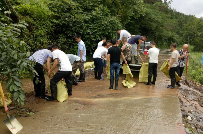 圖為員工裝沙袋堵水 夜里凌晨2點(diǎn)30分,暴雨越下越大,鋼便橋河水位急漲,洪水越來越猛,平時(shí)清澈的小河瞬間變成了一條肆無忌憚的猛獸,洪水裹著樹枝和雜物不斷吞噬著鋼便橋,雜物堵塞了橋孔。對橋產(chǎn)生了很大隱患,如果不及時(shí)疏通,有可能被洪水沖垮,直接威脅著橋頭上的村民房屋。值班搶險(xiǎn)人員迅速進(jìn)行疏通清理,并采取穩(wěn)固措施,利用繩索牽制,清除雜物,經(jīng)過一個(gè)多小時(shí)的奮戰(zhàn),隱患全部排除鋼便橋被牢牢的控制,確保了鋼便橋的安全。