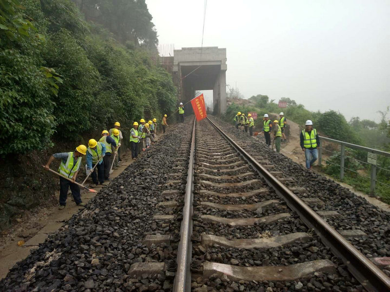 鐵路恢復(fù)通車后,搶險(xiǎn)人員繼續(xù)奮戰(zhàn),又經(jīng)歷一天一夜的時間進(jìn)行了后續(xù)排險(xiǎn)工作,將堵塞段的水溝蓋板全部撬起,徹底清除了里面的淤泥,保障了排水的暢通。又將鐵路上方山體上的危險(xiǎn)地段重新進(jìn)行了加固處理,以防山體滑塌給鐵路帶來損害。此次搶險(xiǎn)共完成鐵路路基邊坡加固30余米,堆碼沙袋500余袋;完成鐵路排水溝淤泥清理200余米,將此段鐵路路基危害進(jìn)行了的徹底整治,受到了鐵路部門的高度贊揚(yáng)。