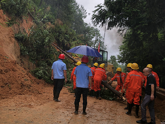 一方有難八方支援。由項(xiàng)目經(jīng)理袁偉新?lián)吻熬€總指揮,項(xiàng)目副經(jīng)理帶隊(duì),項(xiàng)目管理人員10人,隊(duì)伍人員10人,裝載機(jī)1臺(tái)及湖洋鎮(zhèn)、村村民,對(duì)山體滑坡道路受阻路段進(jìn)行清障,展現(xiàn)了企業(yè)的社會(huì)責(zé)任與擔(dān)當(dāng)。
