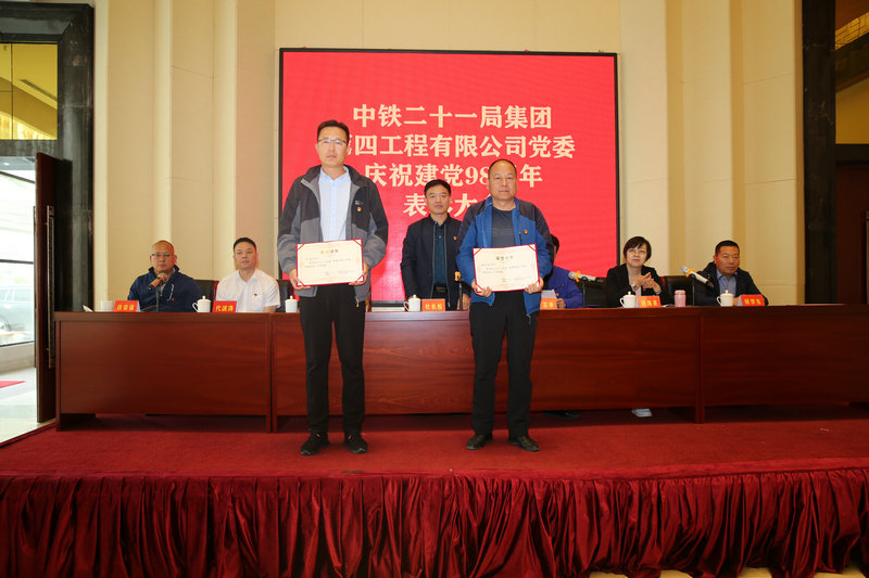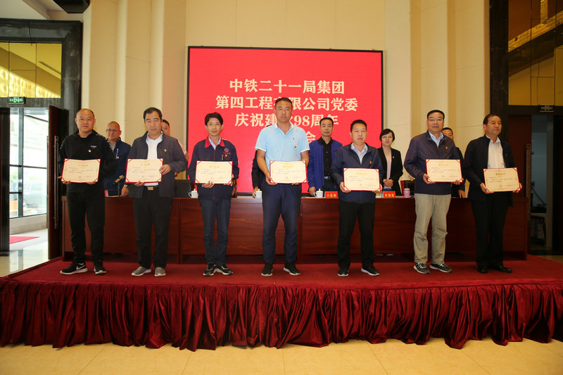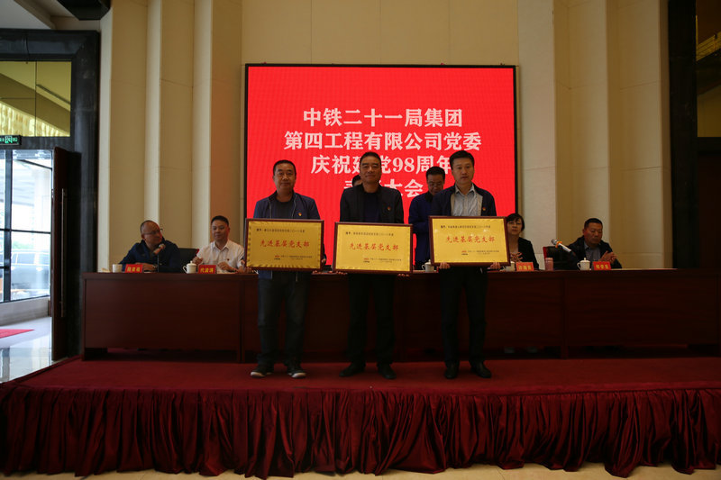 6月27日下午,中鐵二十一局四公司在甘肅民樂召開建黨98周年表彰大會,隆重表彰一年來公司涌現(xiàn)出的一批先進(jìn)基層黨支部、優(yōu)秀共產(chǎn)黨員和優(yōu)秀黨務(wù)工作者。中鐵二十一局四公司黨委副書記、紀(jì)委書記杜長松、特級項(xiàng)目經(jīng)理、副總經(jīng)理卜宗舉、副總經(jīng)理、總會計(jì)師許海英、各項(xiàng)目黨支部書記、黨支部工作部部長50余人參加了表彰大會。