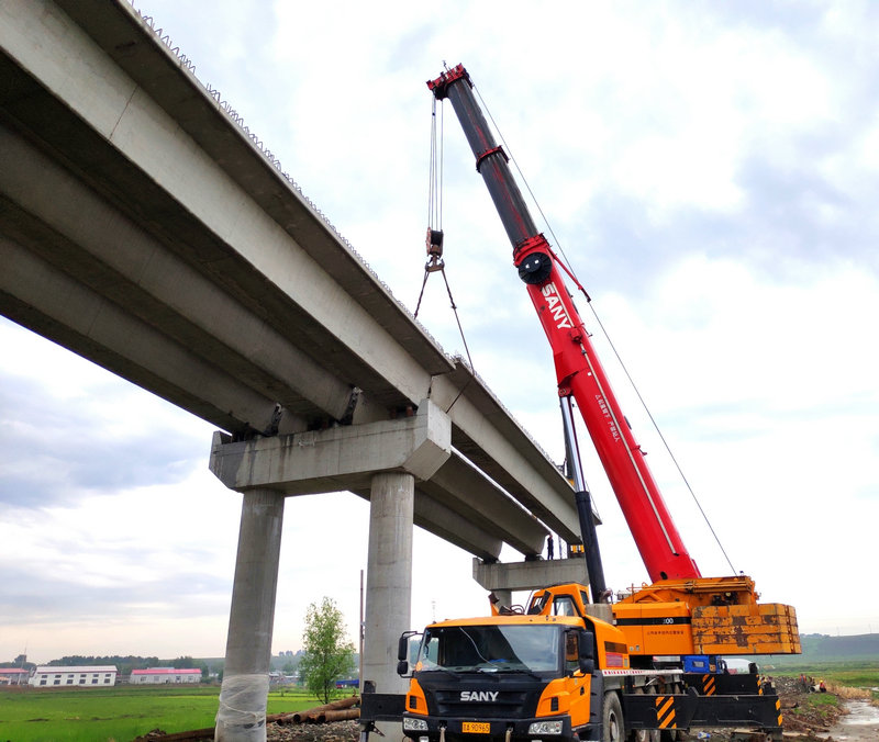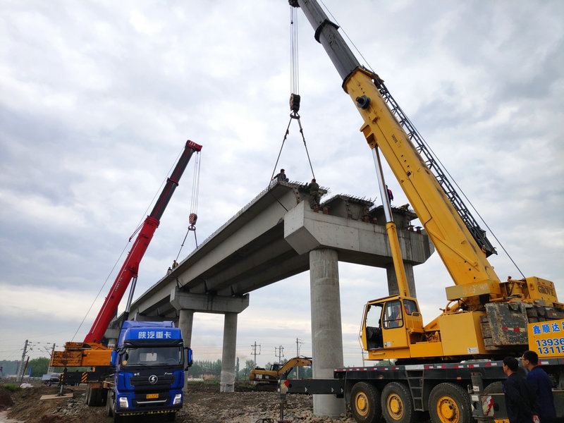 承擔施工任務的中鐵二十三局二公司哈牡電氣化項目部,克服了雨水頻繁、箱梁運距遠、高空作業(yè)施工難度大等不利因素。項目部嚴格落實架梁標準化作業(yè)程序和施工組織方案不走樣,對施工技術(shù)標準、作業(yè)要點以及安全、質(zhì)量控制措施進行了詳細交底,做到任務部署到位,施工人員安排到位,技術(shù)人員指導到位,管理人員監(jiān)督到位、安全措施保證到位。同時項目部加大了機械設備配置力度,調(diào)集了450噸和260噸兩臺大型汽車吊,并提前進行了吊車站位和地基承載力試驗,確保了安全萬無一失。經(jīng)過全體參戰(zhàn)職工的不懈努力,安全順利完成了架梁任務,實現(xiàn)了合攏目標,為下步加快該橋引道和橋面系施工創(chuàng)造了條件。